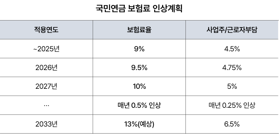 국민연금 보험료는 전년도 소득을 바탕으로 매년 7월 1일 변동되어 다음 해 6월 30일까지 적용됩니다. 동시에 매년 1월 1일부터 국민연금 보험료율이 인상되므로, 매년 1월 1일, 7월 1일 2차례에 거쳐 국민연금 보험료가 조정되오니 급여관리 시 참고하시기 바랍니다.